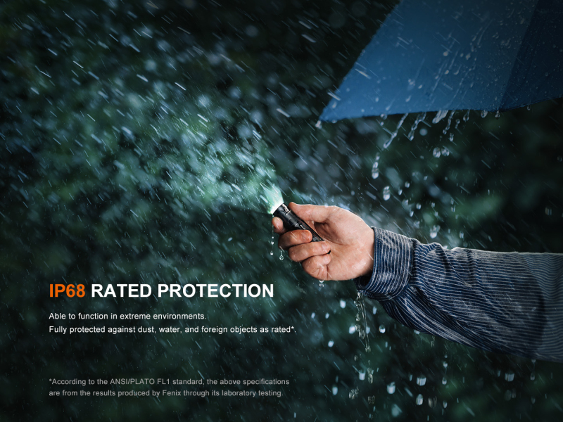 Všechny parametry svítilny (světelný tok, doba provozu na baterie, vodotěsnost, dosvit a nárazuvzdornost) jsou změřeny v souladu s normou ANSI/NEMA FL 1-2009.