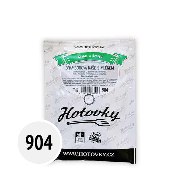 Složení v okamžiku zpracování: bramborová kaše sušená 93% (99% sušené brambory, emulgátor: mono- a diglyceridy mastných kyselin, antioxidant: askorbylpalmitát, DISIŘIČITAN SODNÝ, kurkuma), sušené MLÉKO 5%, jedlá sůl