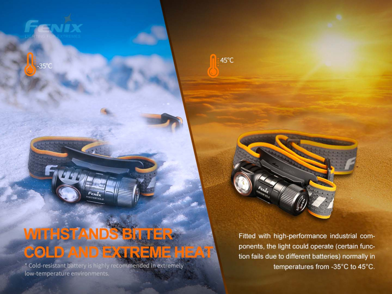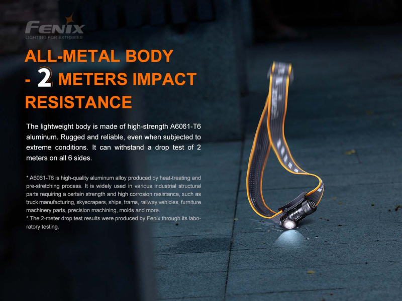 Celokovová konstrukce zajišťuje vysokou odolnost, optimální chlazení a zároveň je plně vodotěsná dle standardu IP68 až do hloubky 2 metry pod vodou. Praktičnost čelovky zvyšuje možnost vyjmout světlo z hlavového držáku a používat ji i jako malou kapesní svítilnu. Čelovka Fenix HM50R V2.0 je ideálním společníkem pro různorodé sportovní aktivity, výlety do přírody i do domácnosti a na práci.