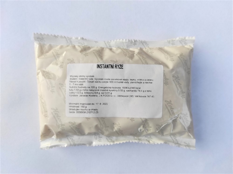 - Příprava: obsah sáčku zalijte 300 ml horké vody a zamíchejte. Po 5-7 minutách je pokrm připraven ke konzumaci.